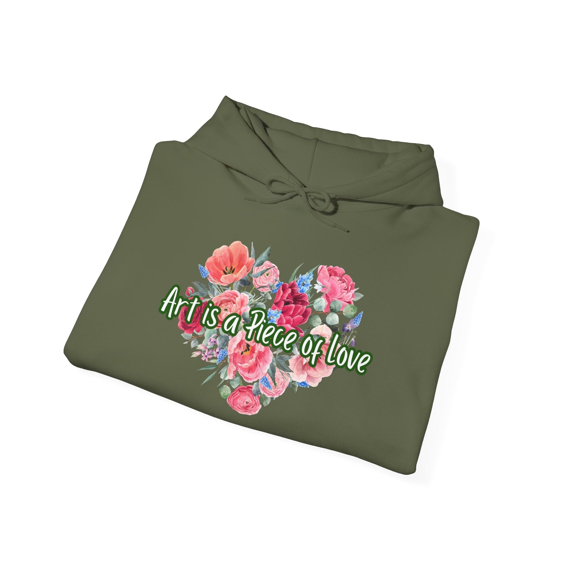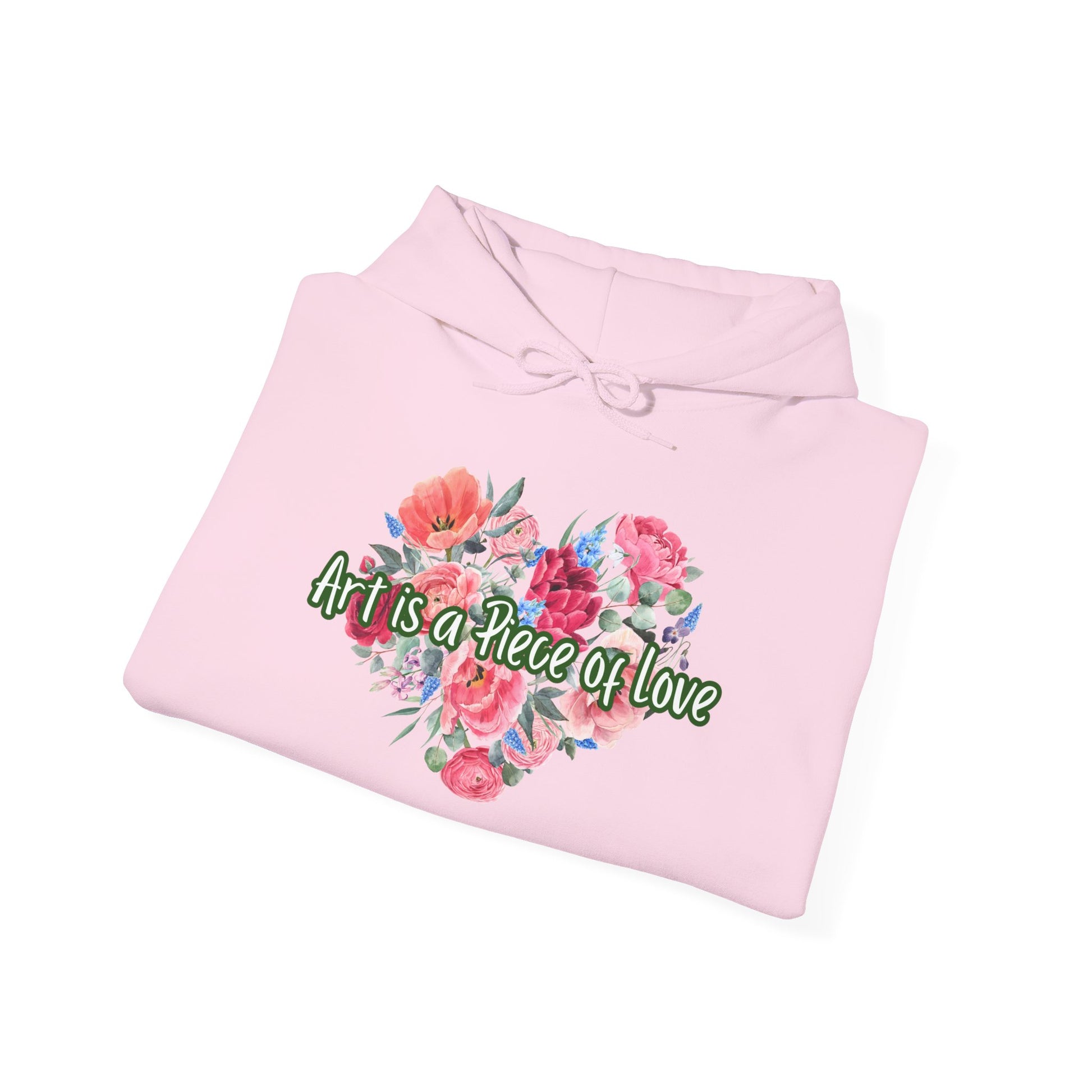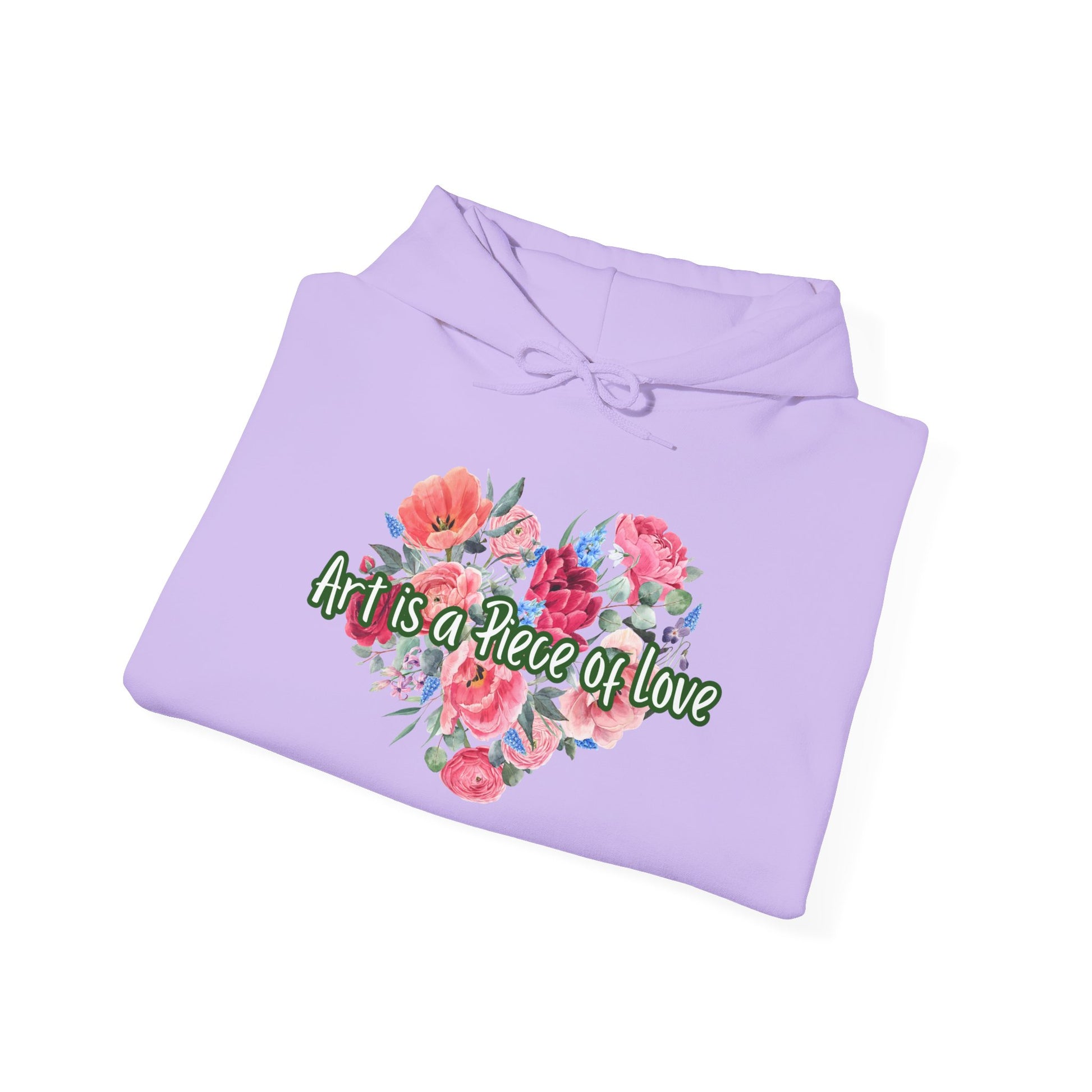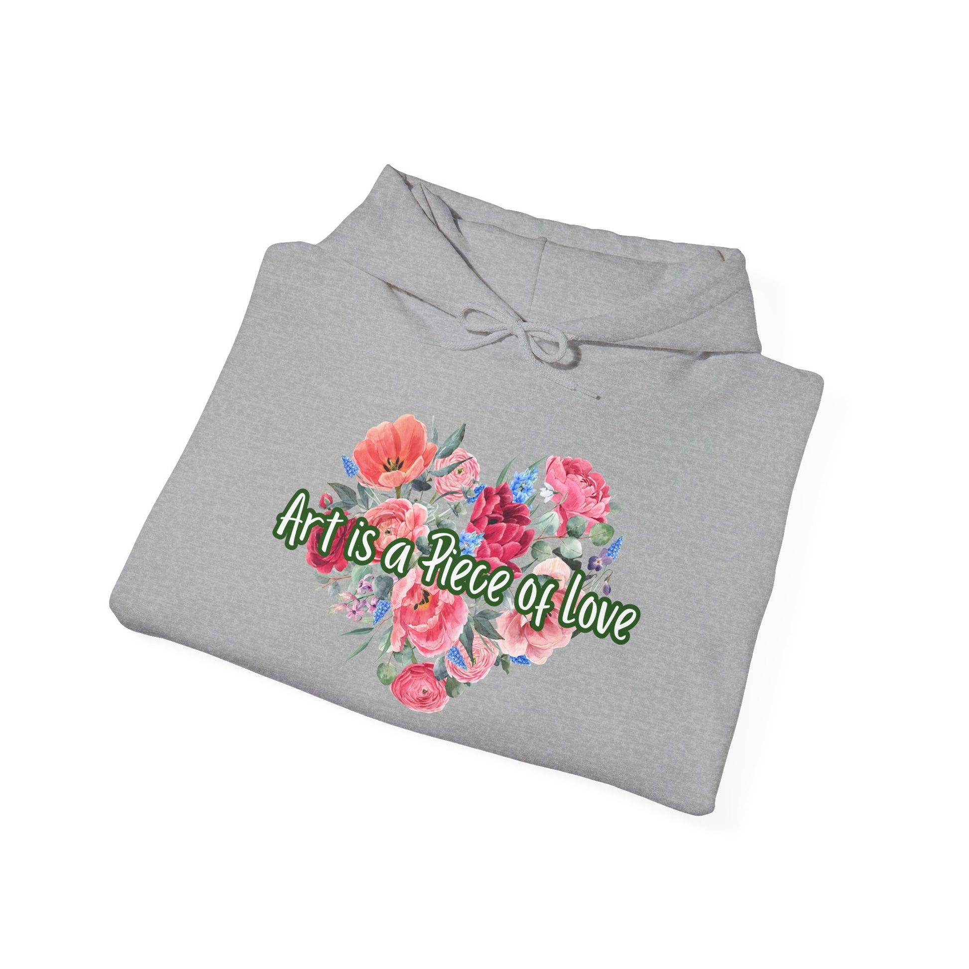 This cozy Unisex Heavy Blend™ Hooded Sweatshirt is perfect for anyone who loves to express their creativity. With its heartwarming design that reads ‘Art is a Piece of Love', it radiates warmth and passion, making it an ideal choice for artists, nature lovers, and anyone who appreciates beauty. The soft fabric provides a comforting embrace on chilly days, whether you're working on your latest masterpiece or enjoying a casual outing with friends. This sweatshirt is versatile enough for everyday wear, festive gatherings, or simply lounging at home. A great gift for holidays, birthdays, or just because, it's perfect for celebrating your creativity and spreading joy. Product features - Spacious kangaroo pouch pocket for warmth - Adjustable drawstring hood for a perfect fit - Made from a medium-heavy fabric blend for durability - Direct-to-Film (DTF) sleeve prints offer unique designs - Ethically sourced materials for responsible fashion Care instructions - Tumble dry: medium - Iron, steam or dry: low heat - Do not dryclean - Machine wash: cold (max 30C or 90F) - Non-chlorine: bleach as needed S M L XL 2XL 3XL 4XL Width, in 20.08 22.05 24.02 25.98 27.99 29.92 31.89 Length, in 27.17 27.95 29.13 29.92 31.10 31.89 33.07 Sleeve length from center back, in 33.50 34.50 35.50 36.50 37.50 38.50 39.50 Size tolerance, in 1.50 1.50 1.50 1.50 1.50 1.50 1.50 We work with Printify as our Production Partner to manufacture this item.