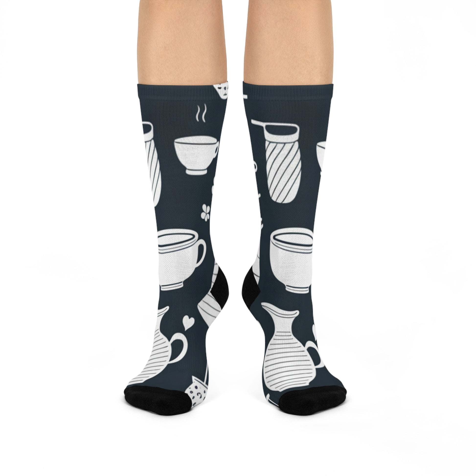 Pottery Cushioned Crew Socks with Cozy Kitchen Designs, Perfect Gift for Coffee Lovers, Fun Homewear, Stylish and Comfy, Unique Gift Idea