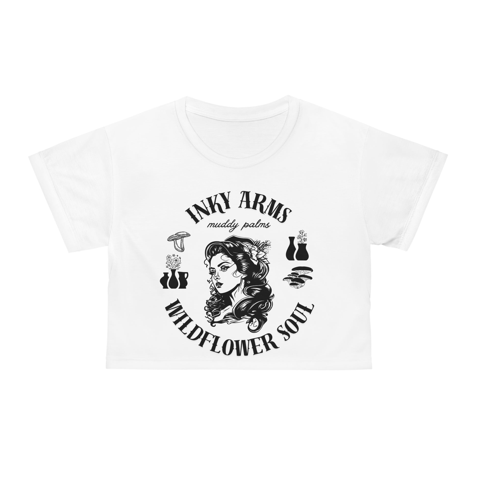 Pottery, Tattoos, and Wildflowers Crop Tee, Pottery Lover Gift, Creative Fashion, Casual Wear, Art Student Style, Gift for Her